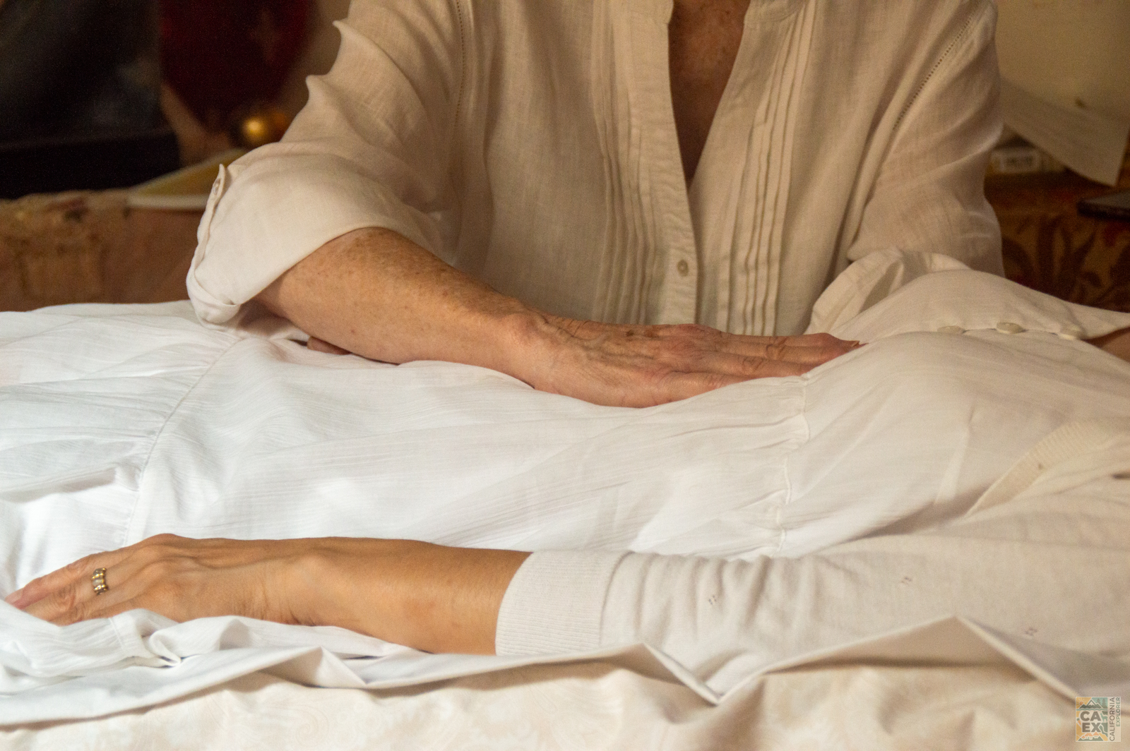 Clients lie fully clothed on a table while Ann places her hands lightly on specific points, often under the body, using only the weight of the body itself as the touch pressure.